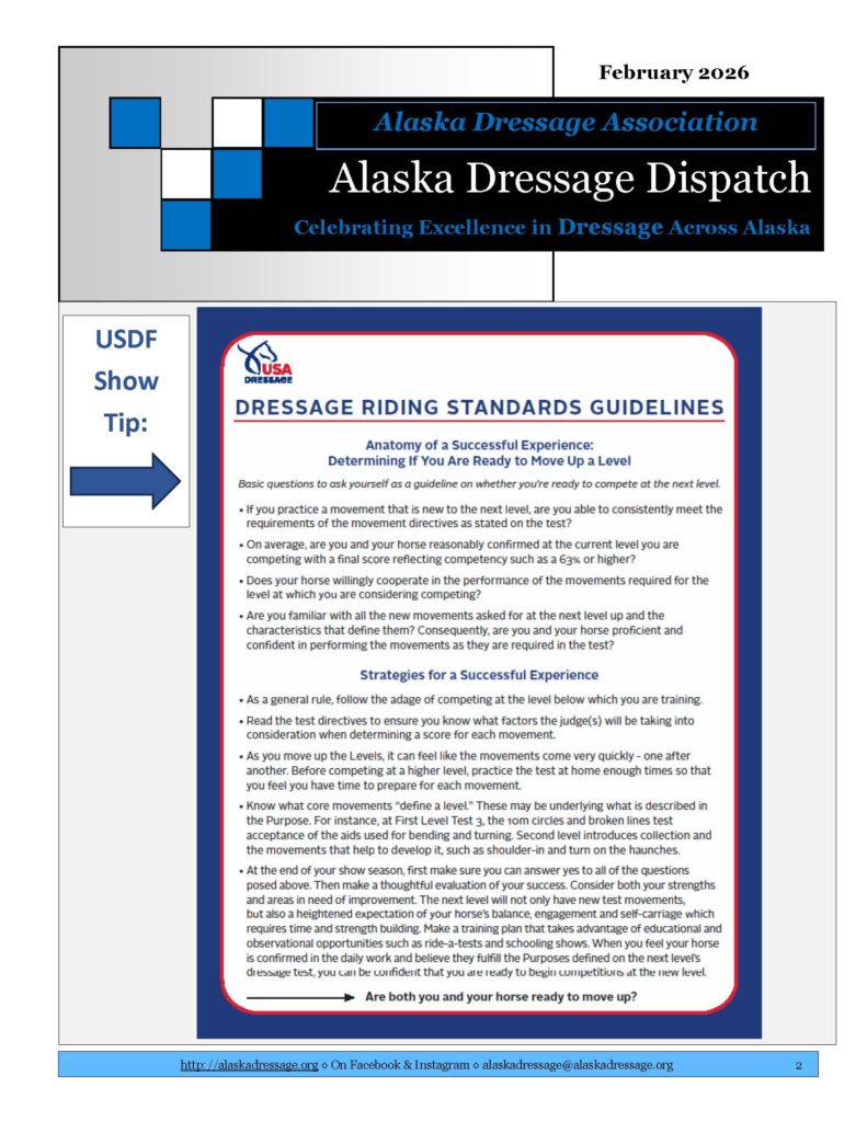 The Alaska Dressage Association is a non-profit 501(c)3 organization and donations are tax deductible.